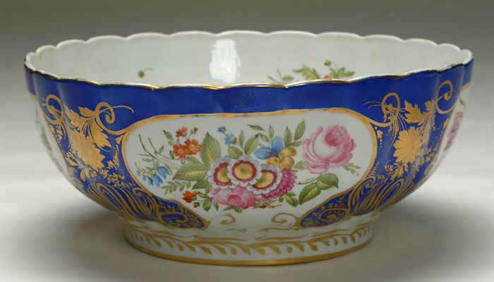 PORCELAIN FLORAL-DECORATED PUNCH BOWL,
