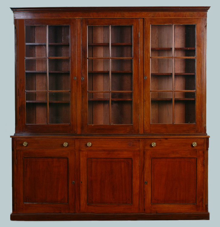 Lot 136. Federal Inlaid Cherrywood Stepback Bookcase, 7' 8" ht, 7' 1" w, 19" d,