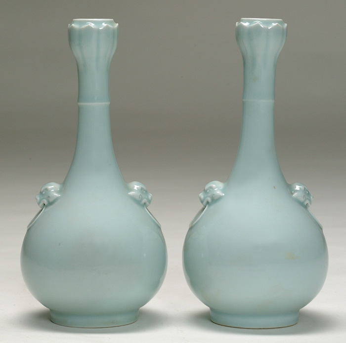 Pair of Clair-Delonce Foliate Bud Mouth Bottle Vases 9" Ht. (Click Any Photo Below To Enlarge) Return To Asian Art