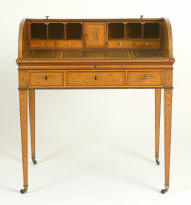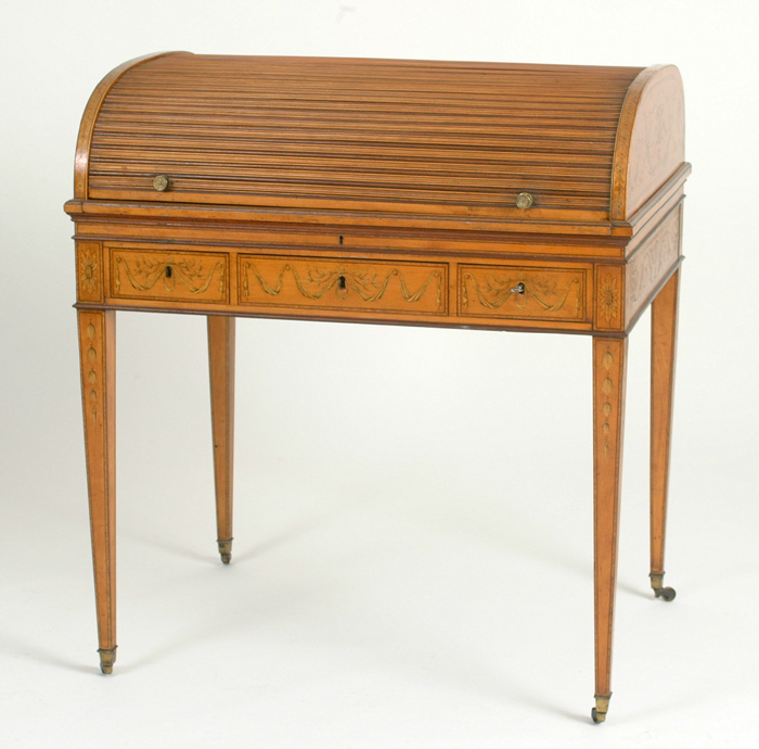 Late 19th Century George III Style Inlaid Satinwood Tambour Desk, 38 1/2" ht, 33 1/2" w, 26 1/2" d