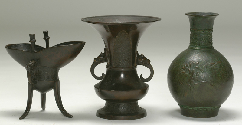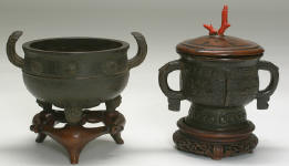 exc., 4" ht, 7" dia.;Chinese Bronze Handled Covered Vessel, 5" ht, 6" dia. |