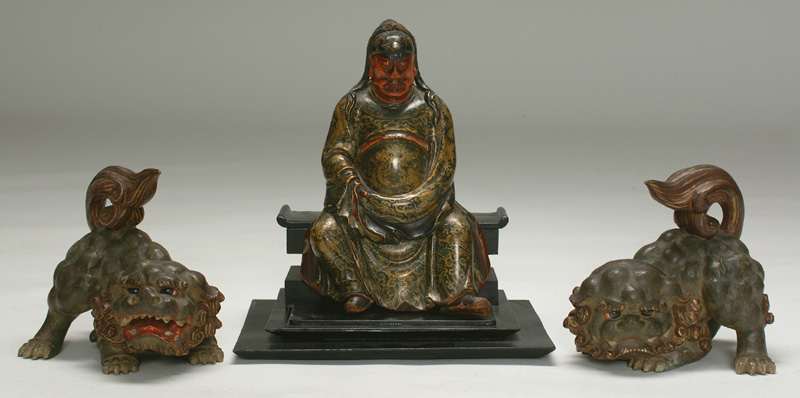 Lots 42-43. Japanese Lacquered Wood Figure;