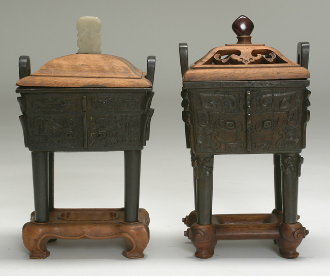 Lots 32-33. Bronze Four Legged Covered Vessels