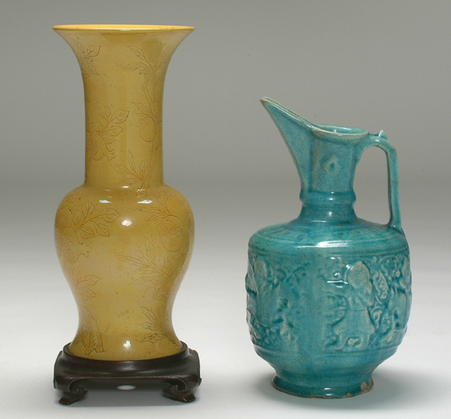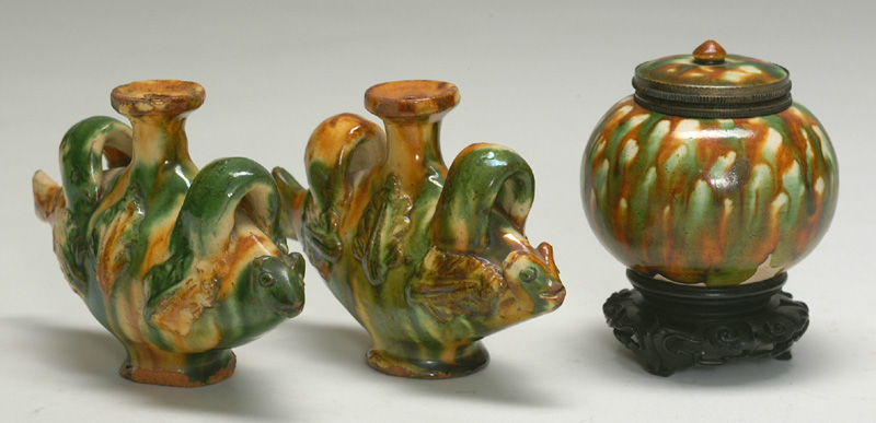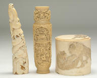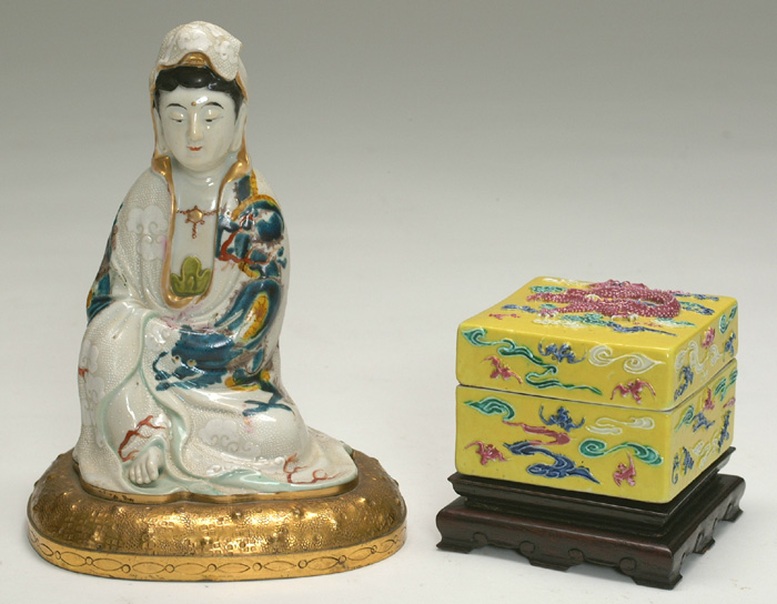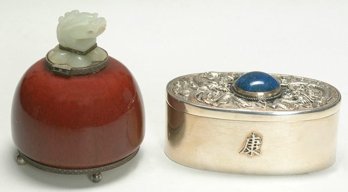Lot 137. Chinese Glazed Porcelain Brush Pot ; Lot 138. Sterling Box w/raised dragons & lapis