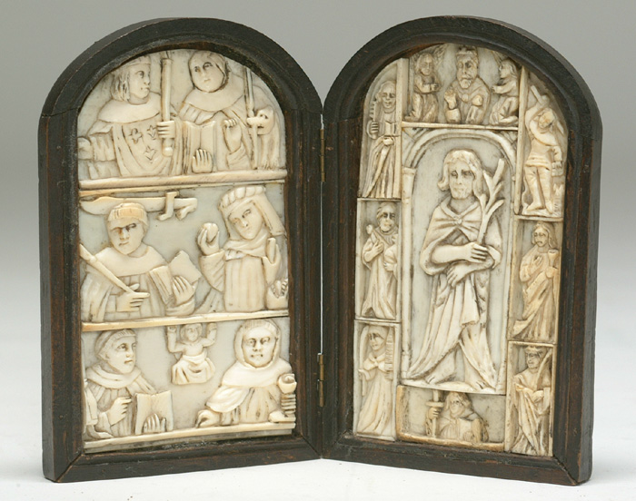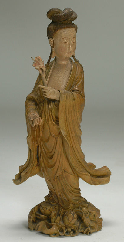 Lot 104. Carved & Painted Figure, woman w/flowers, exc., 13" ht
