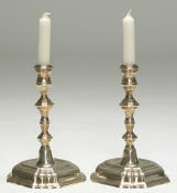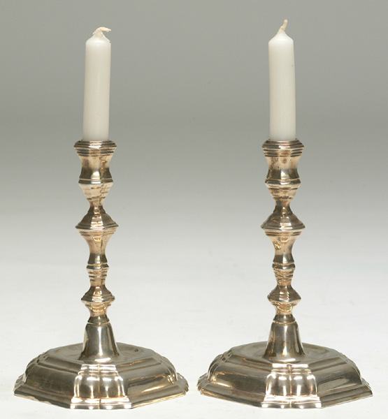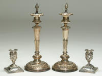 Lot 185. Pair Victorian Candlesticks; Lot 184. Pair Sheffield Plate Candlesticks,