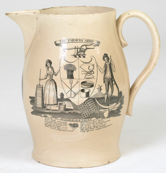 Staffordshire Jug flake to rim, minor paint loss, vg, ht. 9 1/2''