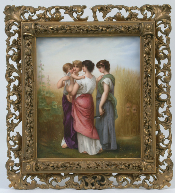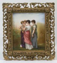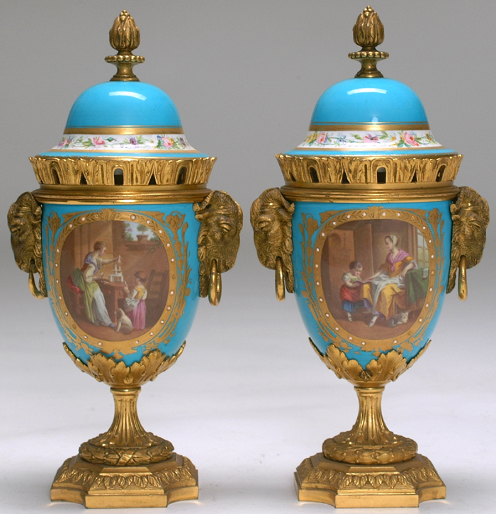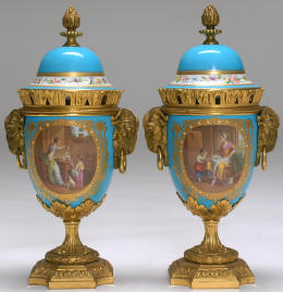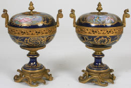 Royal Vienna Covered Urn w/ Handles "Beehive Mark" (middle) repair to lid,