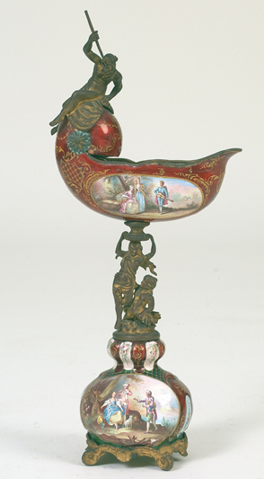 minor gold & jewel loss, chip to lid, vg, ht. 11 1/2'' |