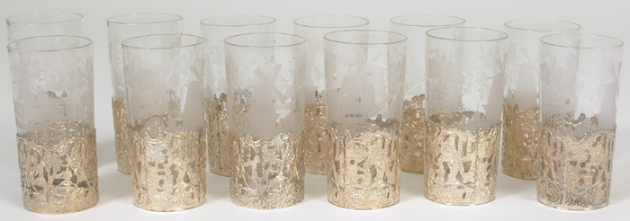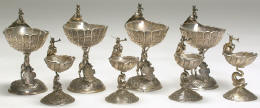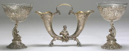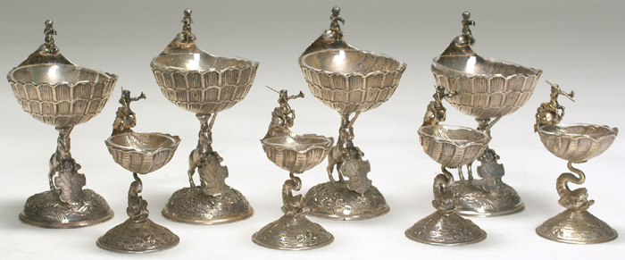 w/unicorn bases, 800 silver, chip to one glass insert vg., total