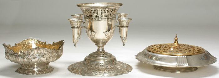 800 silver w/ brass insert, 70.6 Am.oz, exc, ht. 6 1/2'' dia. 16'' |