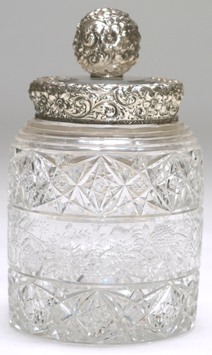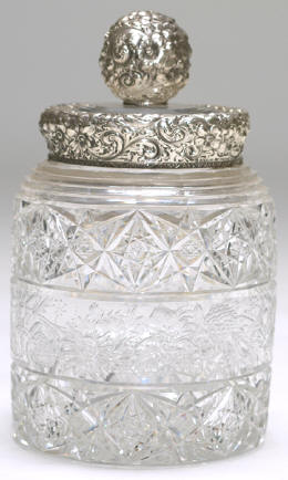 Fine Cut Glass Biscuit Jar w/ Sterling Lid
