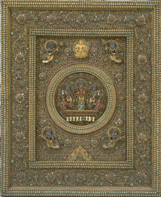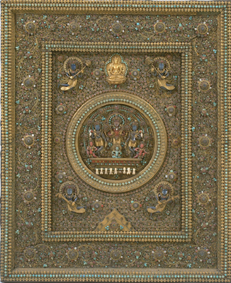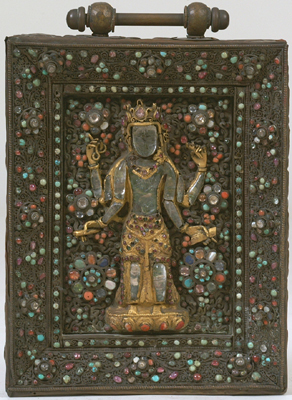 Middle Eastern Brass/Ivory Hardstone Icon (left) minor loss, g