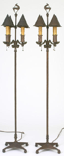 hammered copper & iron, orig. patina & condition, vg, ht. 5'