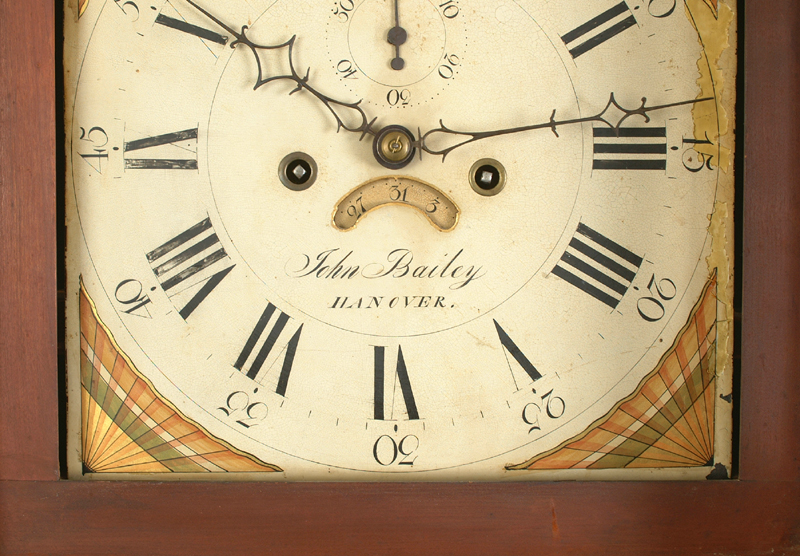 John Bailey, Sr. Tallcase Clock Hanover, Mass., 8' ht Provenance: Direct descendents of General Samuel Breck