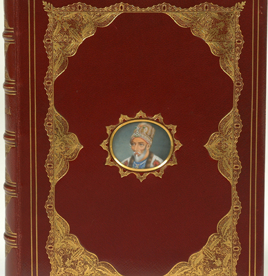 cover is inset with portrait of regal male whose crown is adorned with