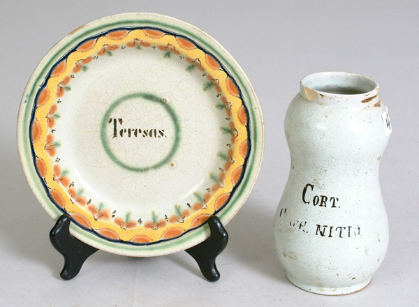 Lot 411. 18th C Plate & Drug Pot |