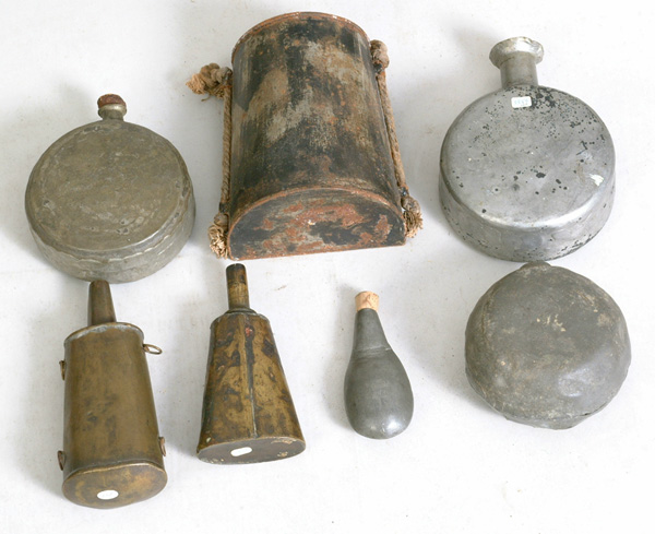 Lot 493. Pewter/Brass Flasks |