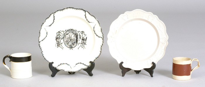 Lots 299-301. Creamware Plate "Conquest of Canada 1759"; 18th C Plate; & 2