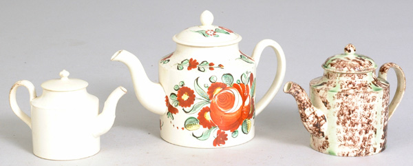 Lots. 315-316. 18th C Creamware Teapot, 5"; English King's Rose Creamware