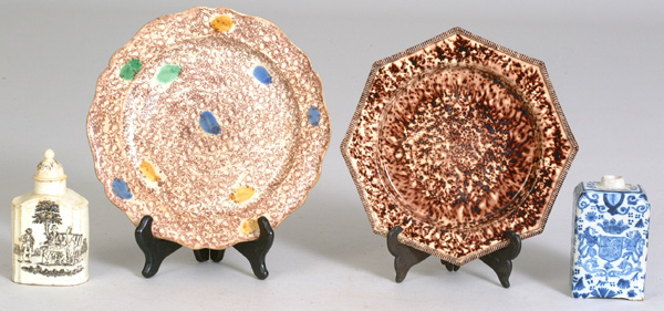 Plates, 9-1/2"; 17th C Delft Tea Caddy W/Coat of Arms of Amsterdam, 4-1/2" |