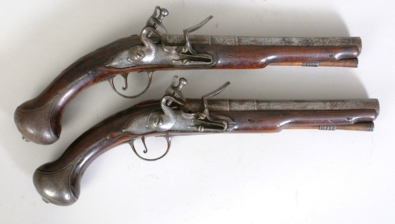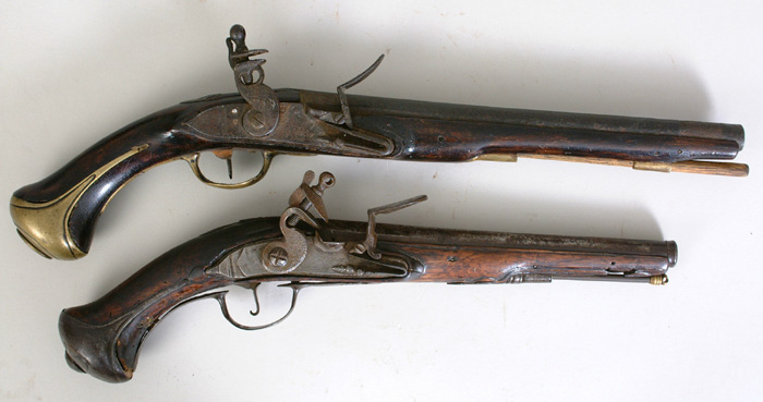 27. 2 Flintlock Pistols, restored, 11-1/2" barrel; 10" barrel |