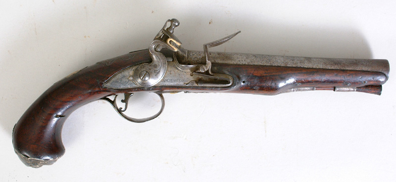 22. English Pistol, silver mounted; Richards, maker, 7-1/2" barrel |