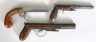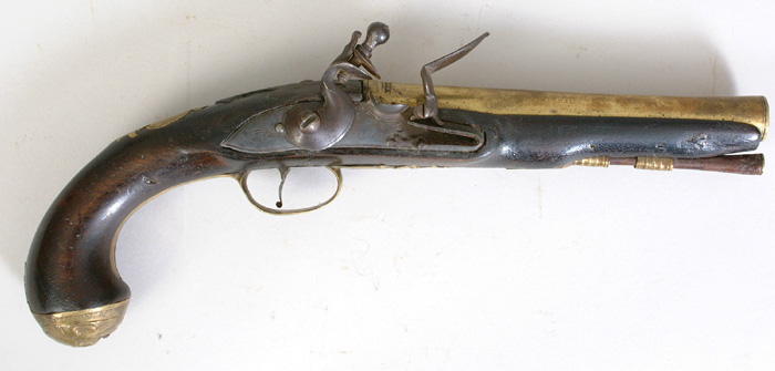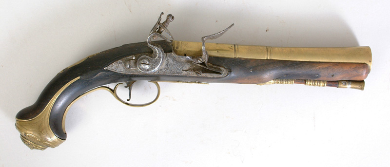 21. French Dragoon Pistol, rare brass 10" barrel, mask on butt end |
