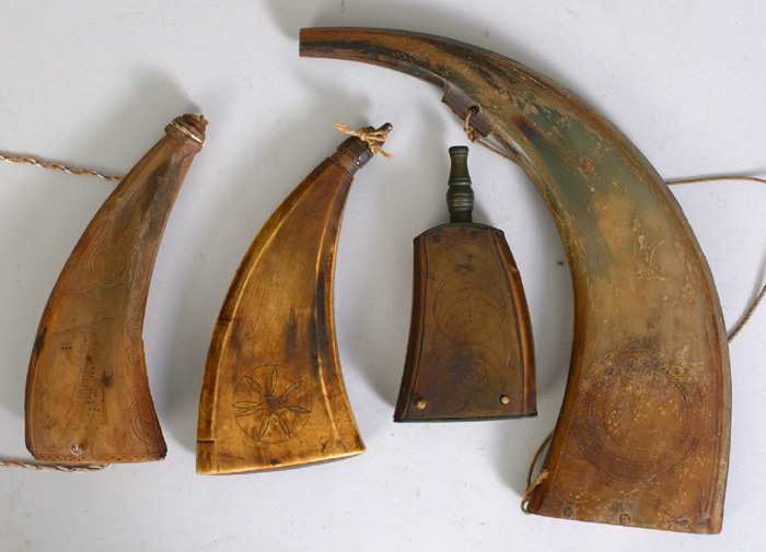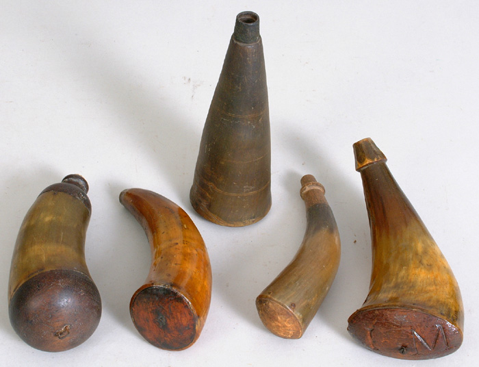 Lot 180. 5 Powder Horns, 8"; 7"; 7"; 7"; 8" |