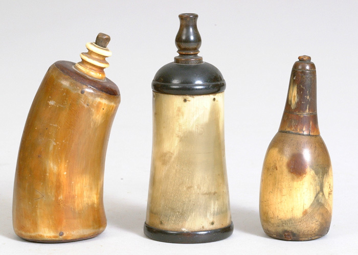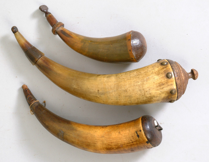 Lot 182. 3 Powder Horns, 4-1/2"; 8"; 6-1/2" |