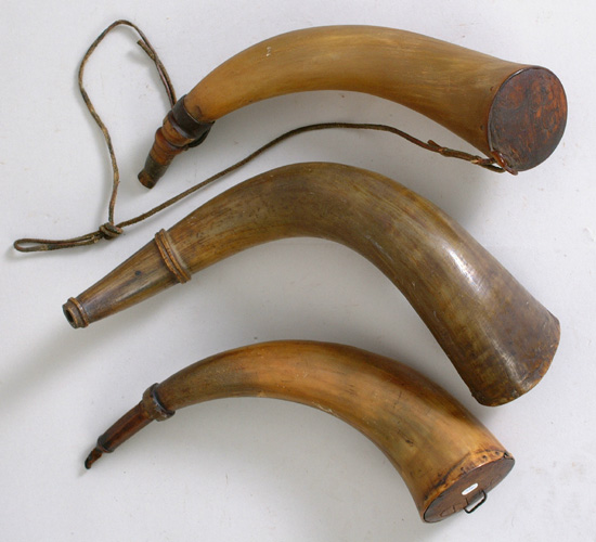 Lot 175. 3 Powder Horns, 7"; 12"; 10" |