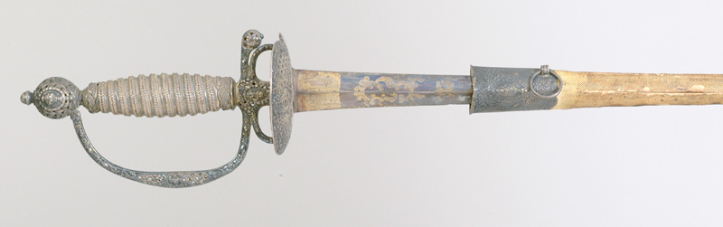 military motif, hallmarked, gold overlay to Colichemarde blade, 30" blade
