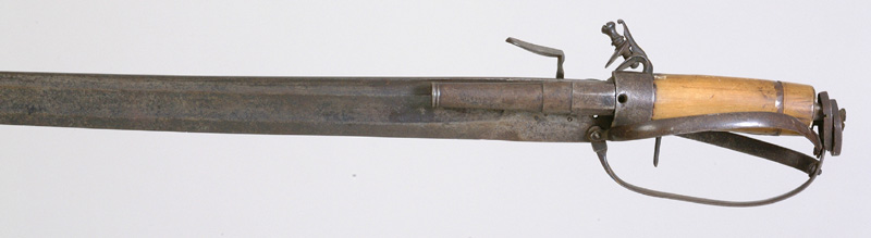Lot 102. 18th C Hunting Sword, flint lock pistol